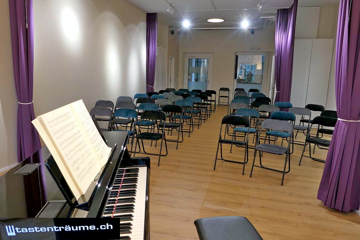 Ergänzend kann ein zusätzlicher Raum (33m2) als Empfangs- oder Apéro-Bereich (mit Verbindungstüre) dazu gebucht werden. Ein Beamer steht zur Verfügung.