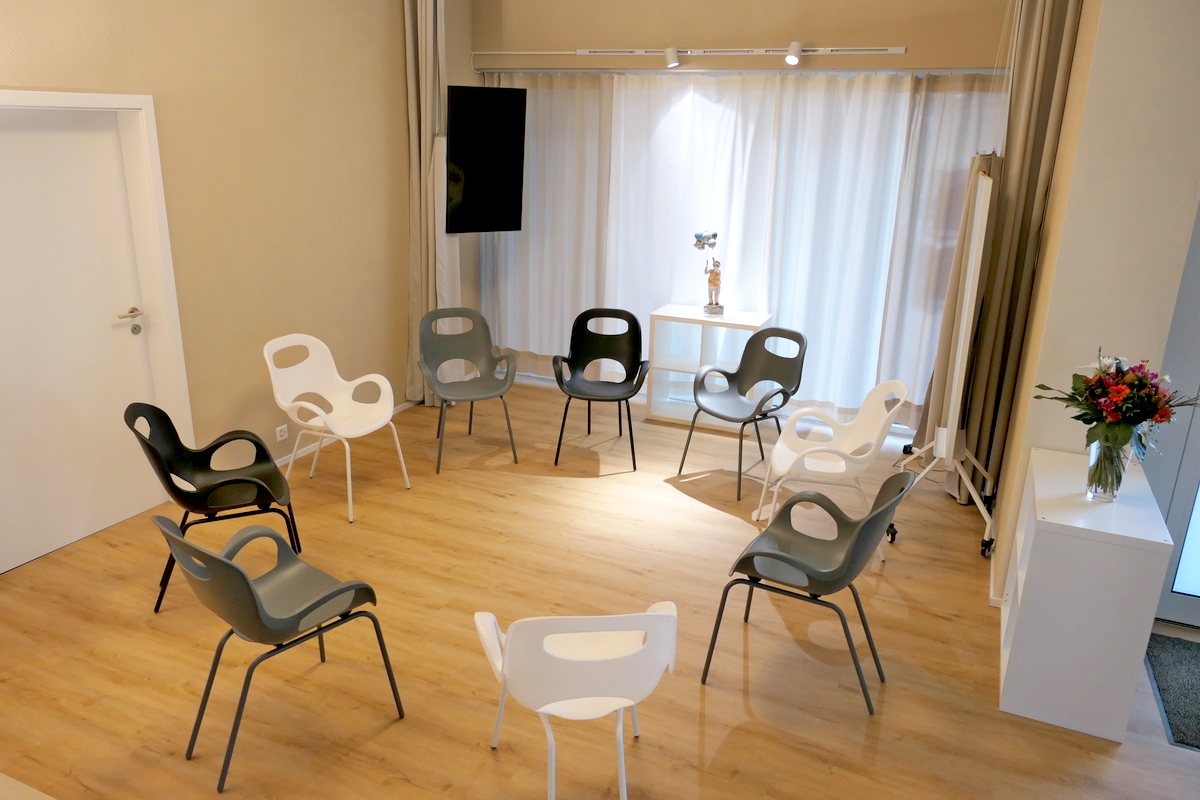 Fertig eingerichteter Praxis-, Therapie- und Kursraum für Dienstleister. Ohne Mietvertrag und ohne Kündigungsfrist. Flexibel buchbar bei Bedarf.
